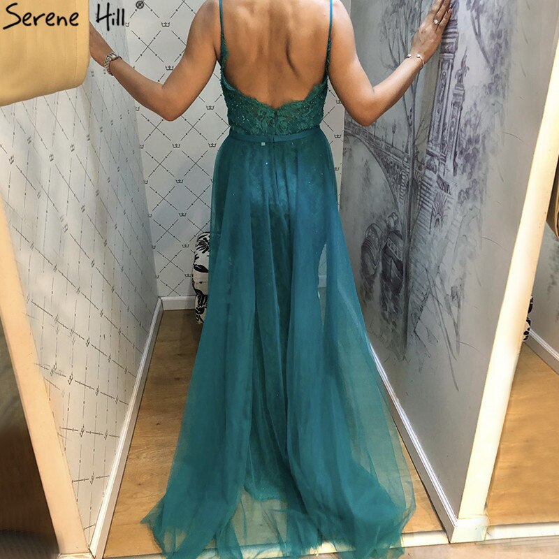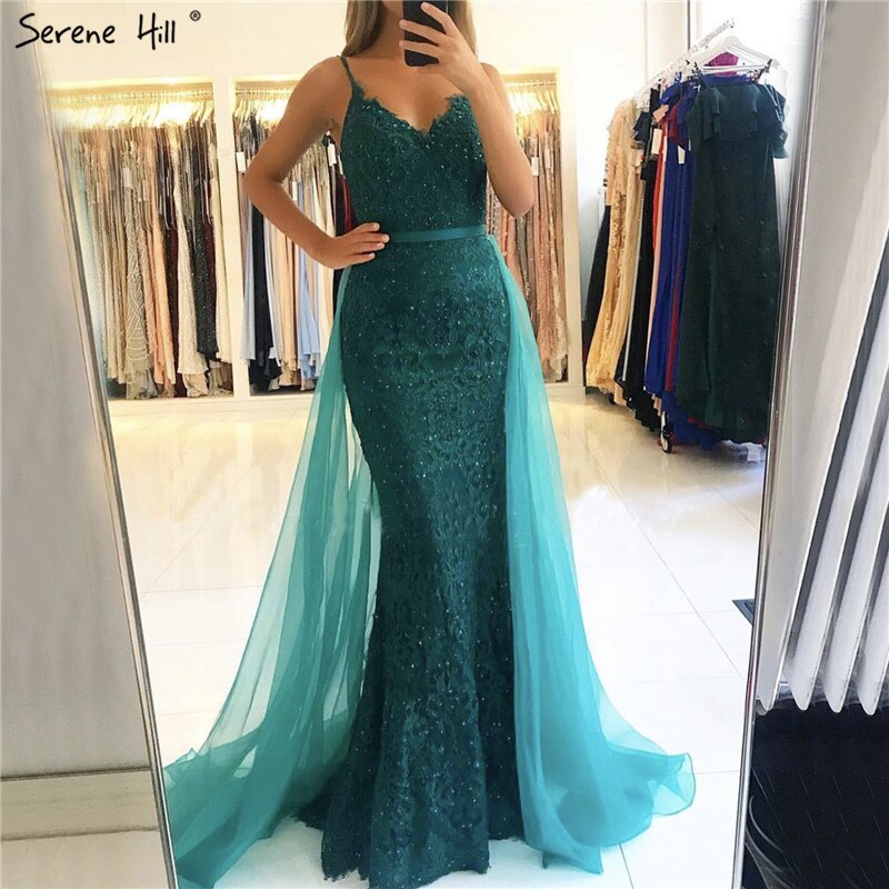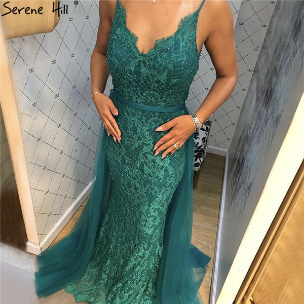 Robe de soirée sirène verte en dentelle et perles, tenue de soirée sexy sans manches, col en V, tulle, photo réelle, LA70064, 2025