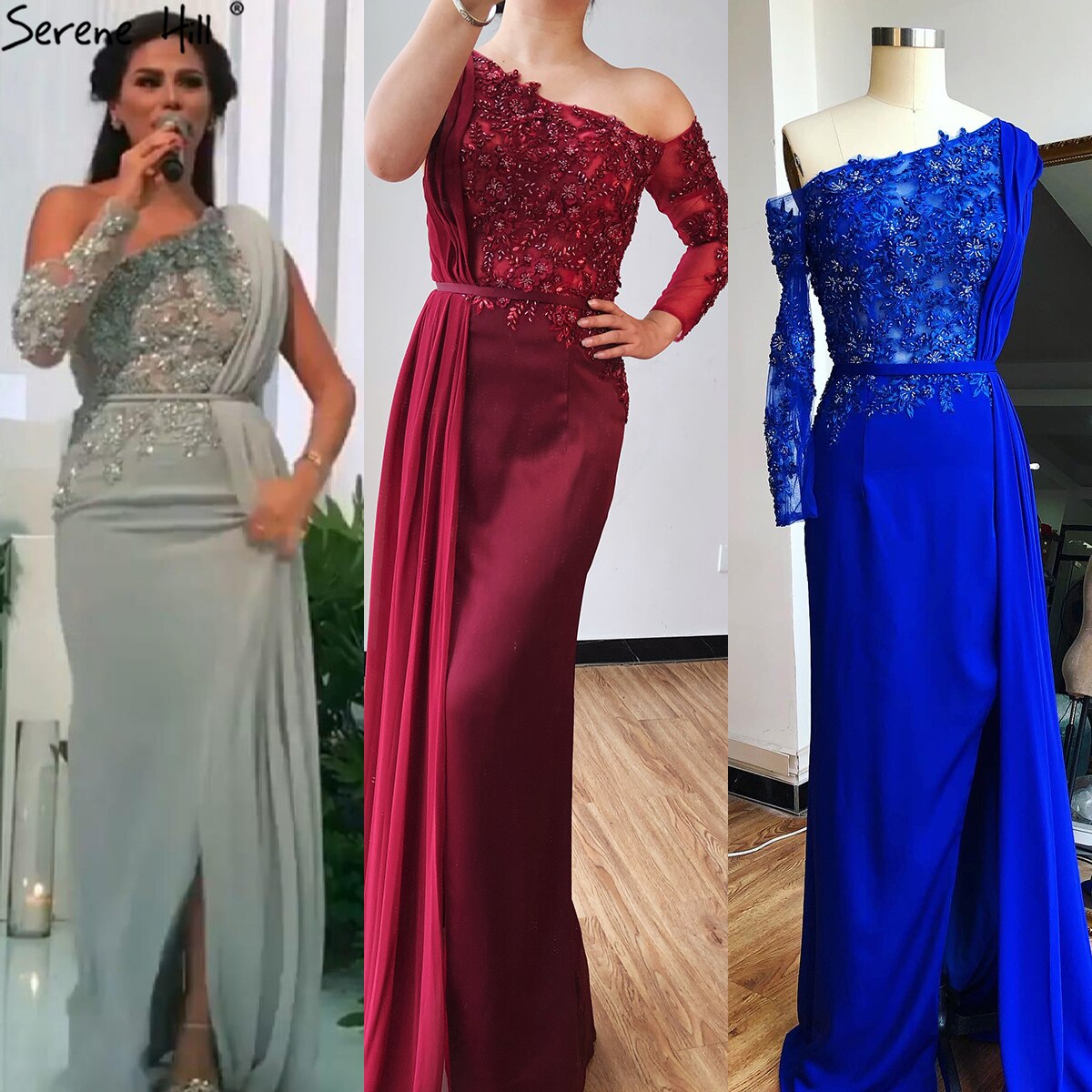 Robe de soirée grise haut de gamme, coupe trapèze, asymétrique, fleurs faites à la main, perles, 2025 LA70553