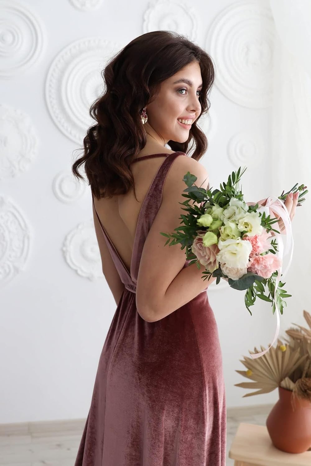 robe de demoiselle d'honneur en velours à col en V
