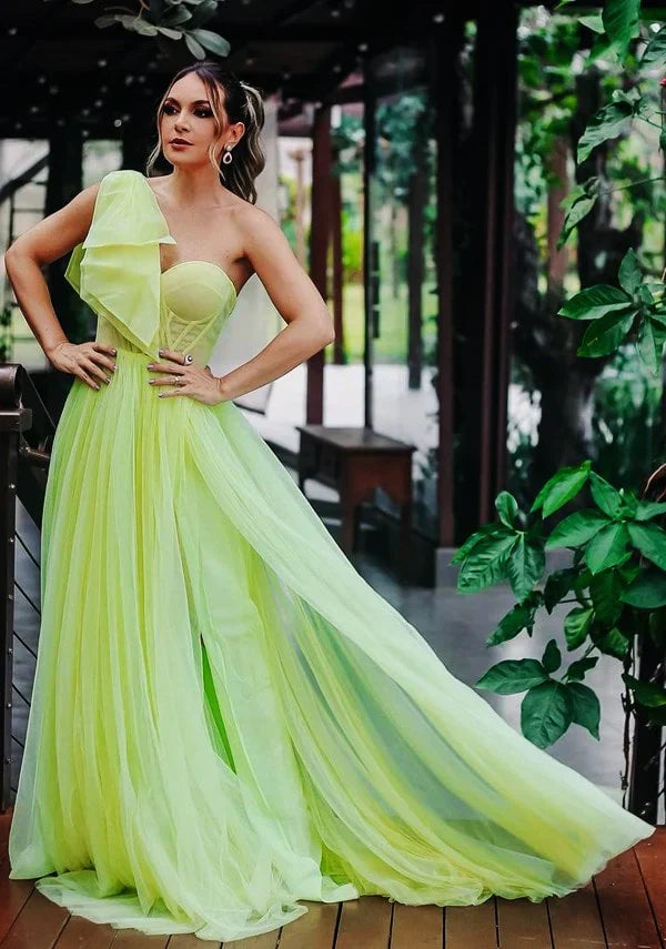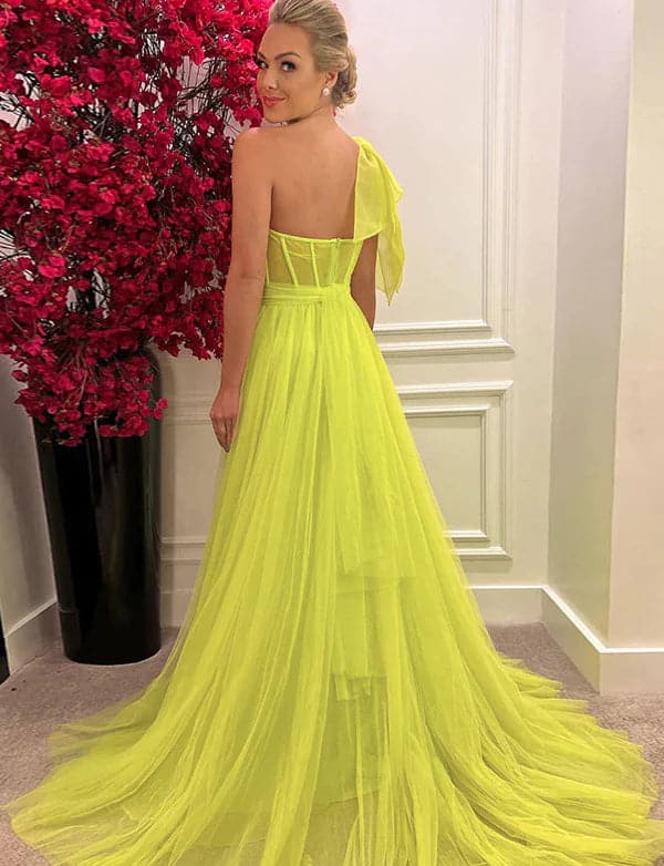Robe de bal asymétrique fendue sur une épaule (référence SYP12)