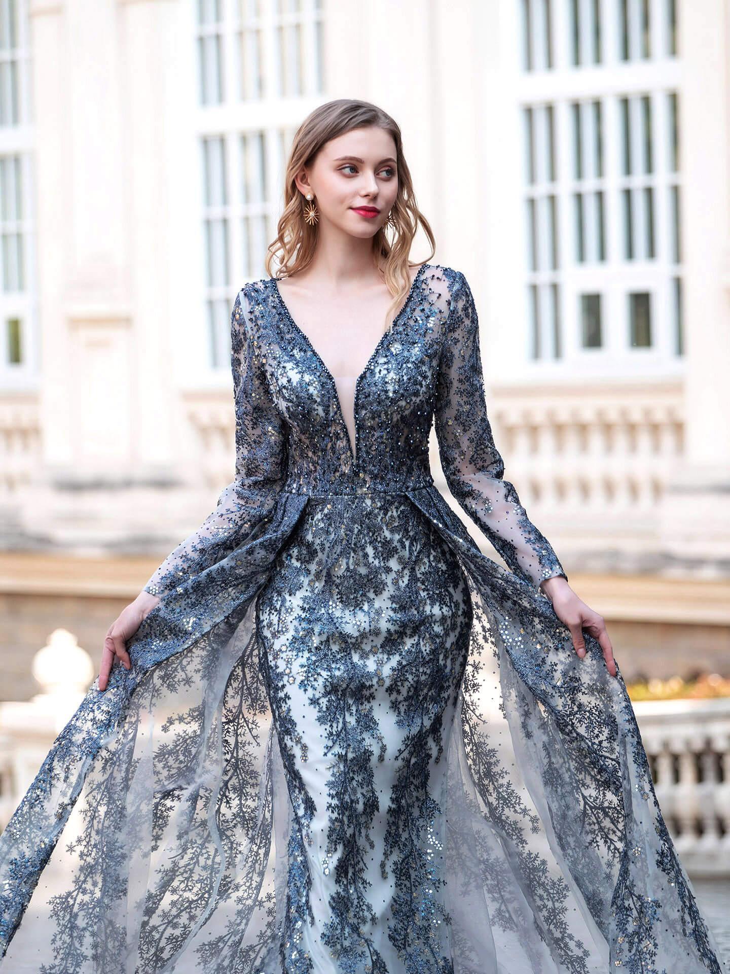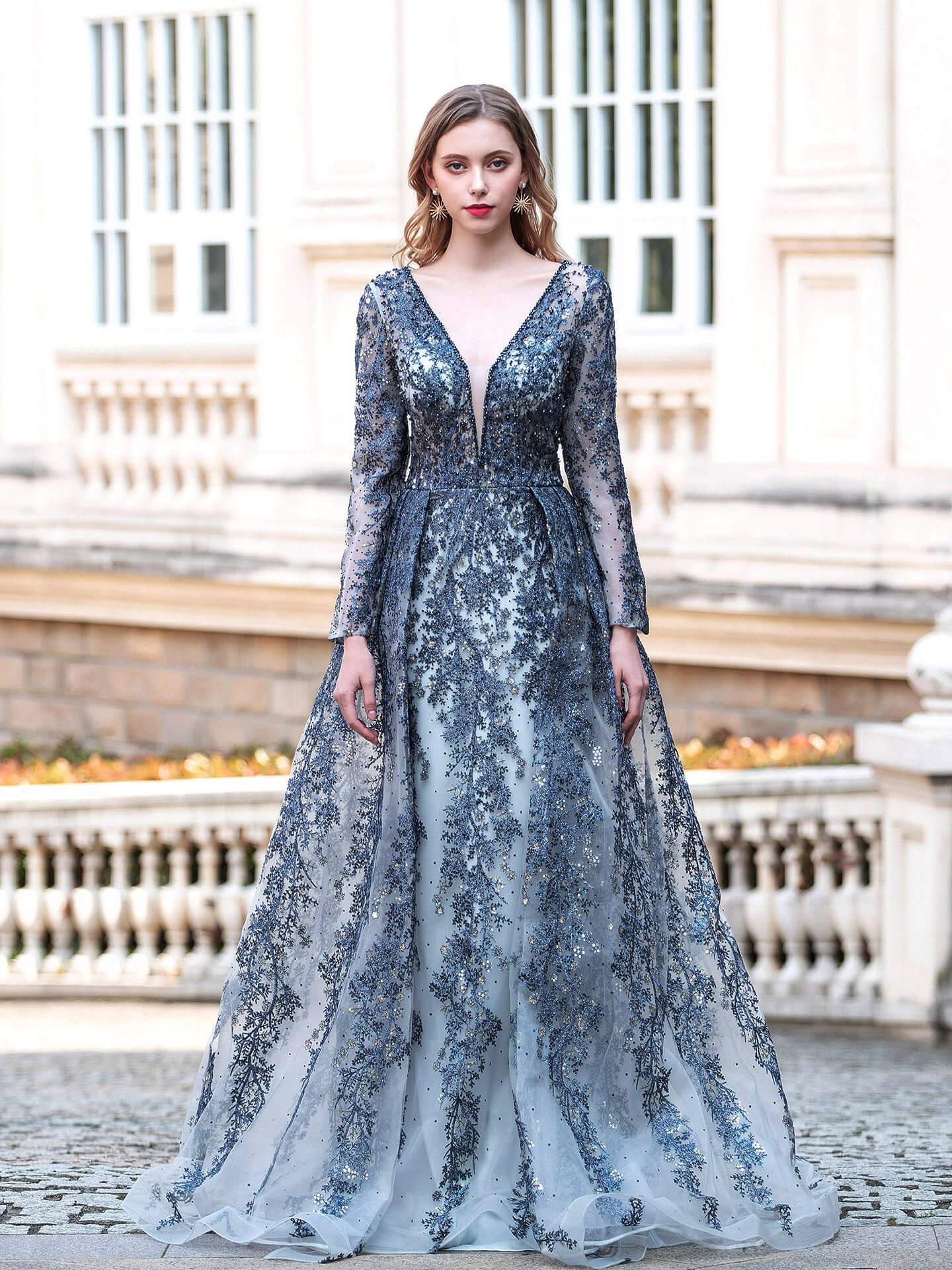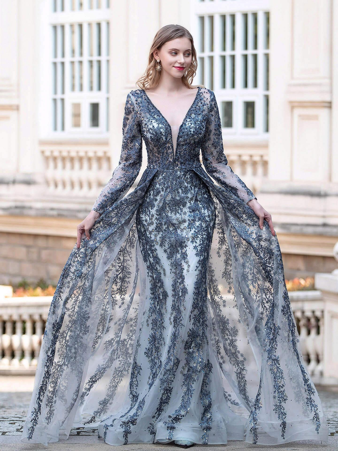Robe de soirée sirène/trompette Baoleely, col en V, manches longues, longueur au sol