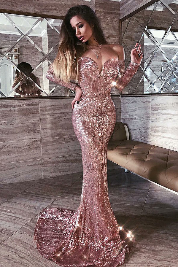 2. Silhouette : Sirène 3. Encolure : Col en V 4. Ornementation : Paillettes 5. Tour de taille : Naturel 6. Manches : Manches longues 7. Styles de dos : Dos ouvert 8. Longueur de l'ourlet : Traîne de cour 9. Osseux : Oui 10. Entièrement doublé : Oui 11. Soutien-gorge intégré : Oui 12. Couleur de l'image : comme sur l'image( Pour les couleurs personnalisées, veuillez consulter notre nuancier et laisser une note)