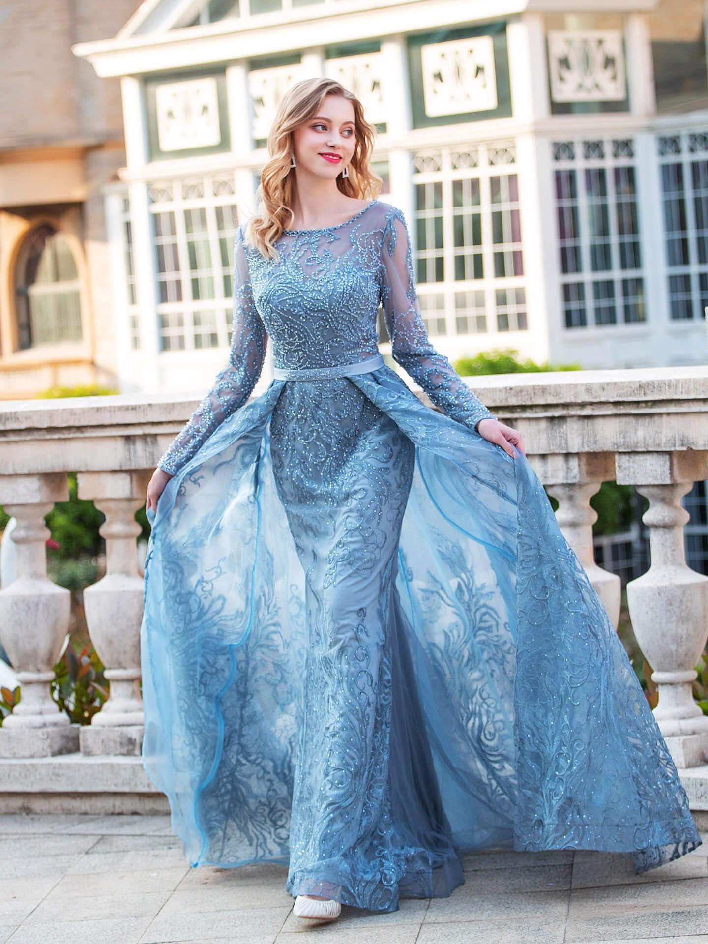 Robe de soirée sirène style trompette Baoleely, manches longues, longueur au sol