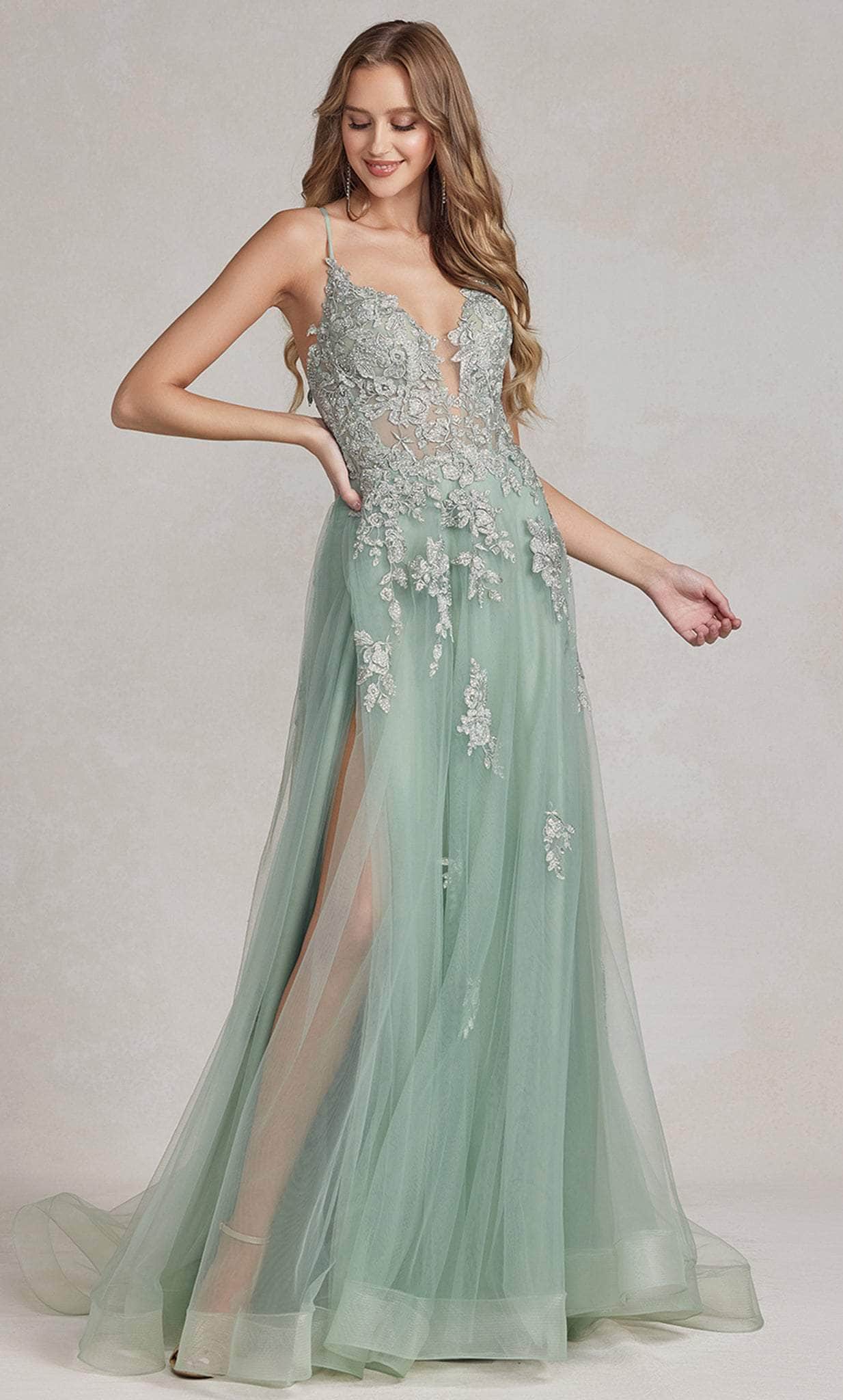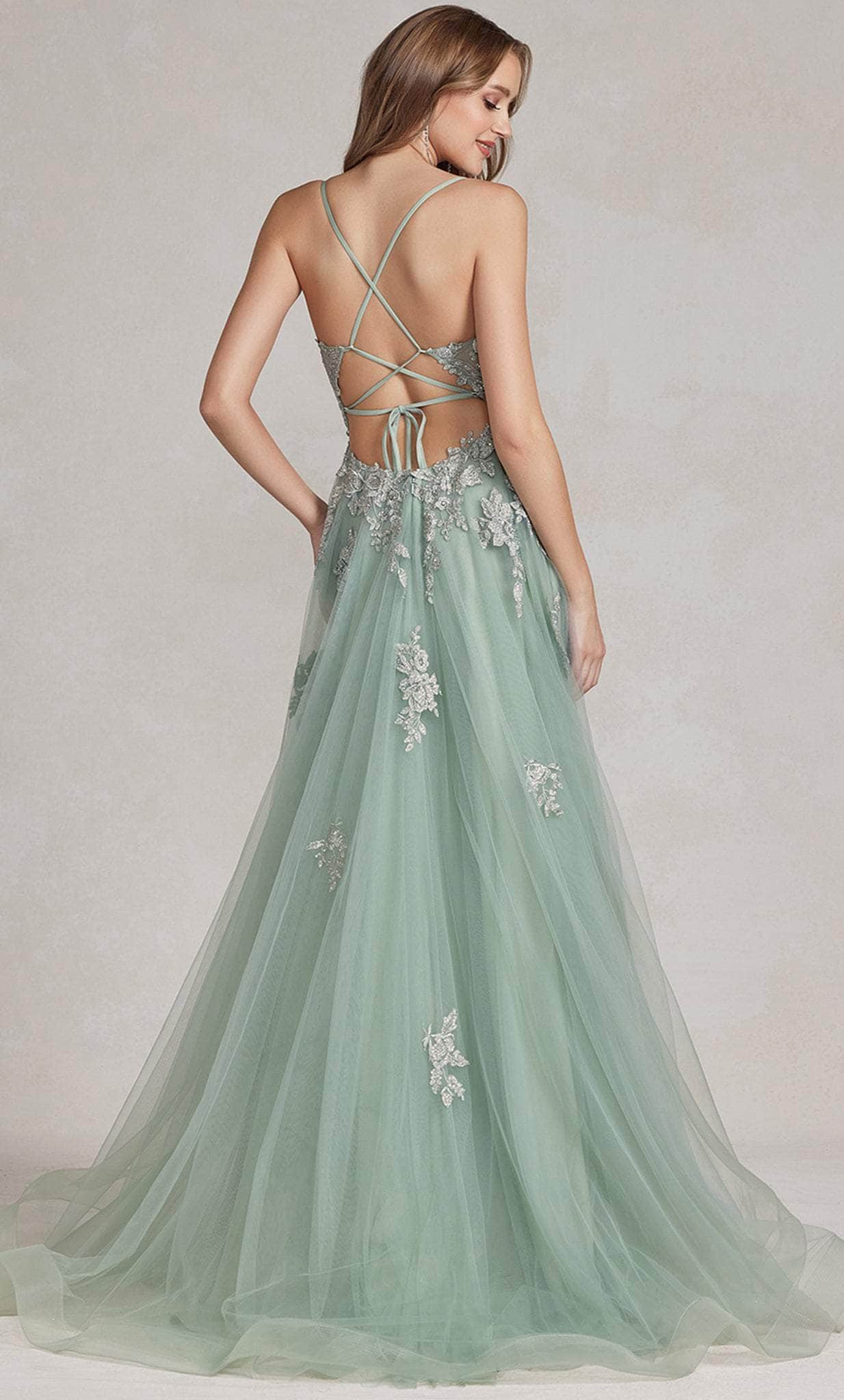 Faites sensation dans cette robe Nox Anabel G1149. Une fabuleuse combinaison de broderies florales et de perles orne cette robe pour un look captivant. Elle se compose d'un décolleté en V plongeant, de fines bretelles et d'un laçage dans le dos nu. La jupe trapèze se drape pour dévoiler une fente haute avant de se prolonger en une traîne majestueuse. La nuit est à vous dans cette robe spectaculaire de Nox Anabel (G1149). Les mannequins portent les coloris Mauve, Pervenche et Vert Sauge.