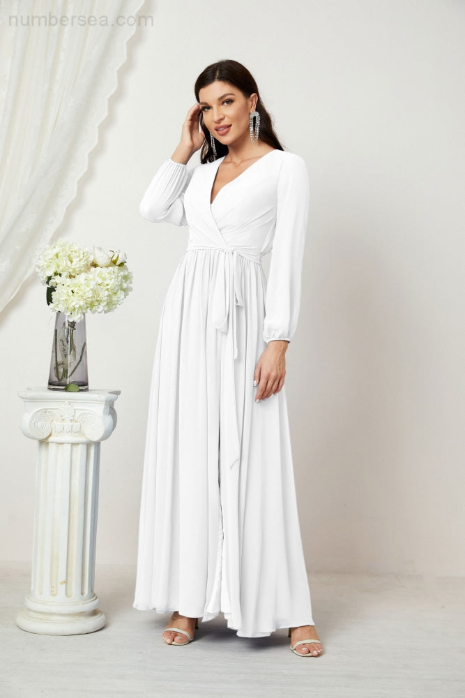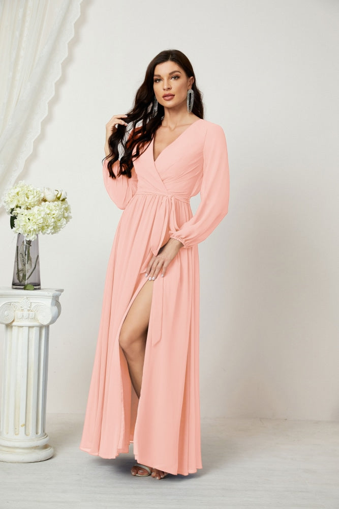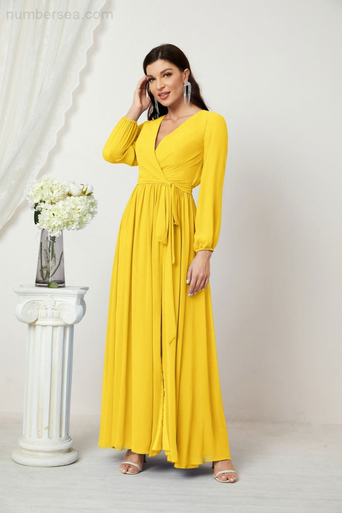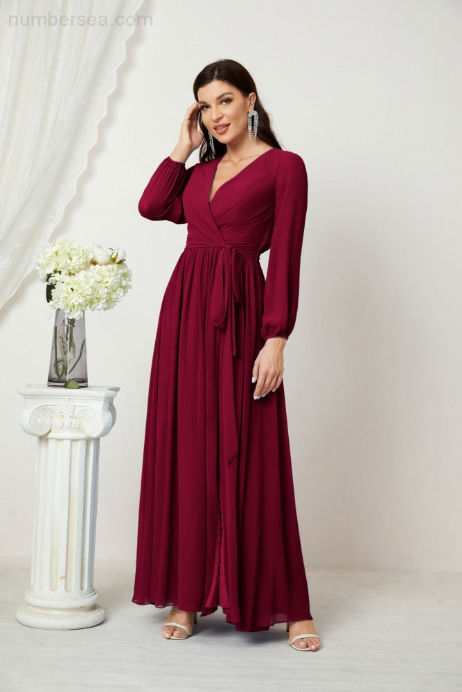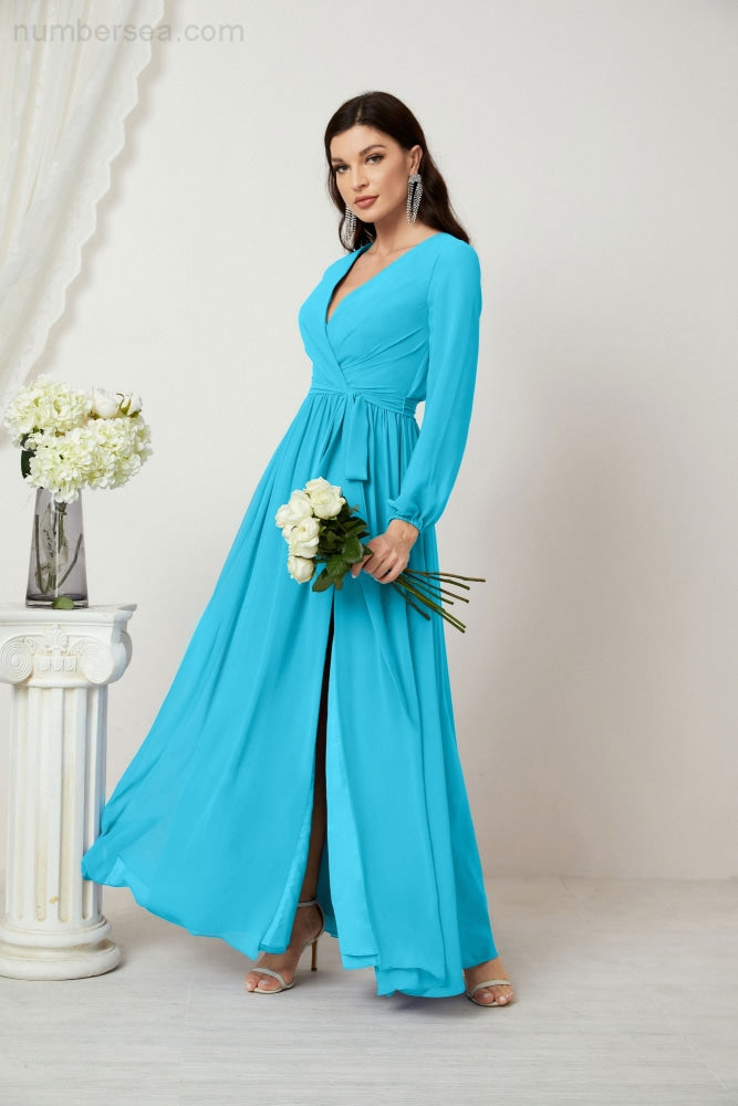 Robe de soirée Sunnderly en mousseline à décolleté plongeant en V, robe de demoiselle d'honneur longue à manches bouffantes et fente latérale, modèle SY2806
