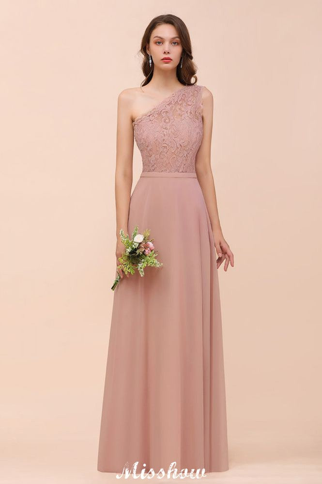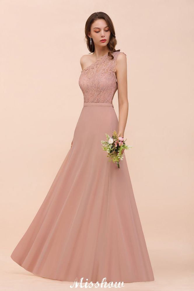 Robe de demoiselle d'honneur asymétrique en mousseline rose poudré, robe d'invitée de mariage pour la mariée