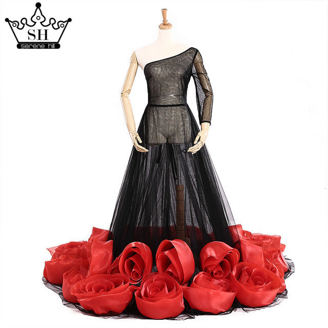 Type d'article : Robes de soirée Occasion : Soirée formelle Numéro de modèle : 66283 Silhouette : Ligne A Tour de taille : Empire Décoration : Fleurs.Étage.Volants Style de manche : débardeur Nom de marque : SERENE HILL Train : Train de la Cour is_customized: Oui Soutien-gorge intégré : Non Type de tissu : Tulle Encolure : Une épaule Matière : Polyester Longueur des manches (cm) : Longue Images réelles : Oui Élément de mode : Illusion Longueur des robes : Longueur au sol