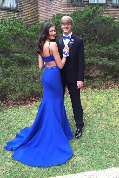 Robe de bal sirène dos nu ornée de perles et traîne balayée