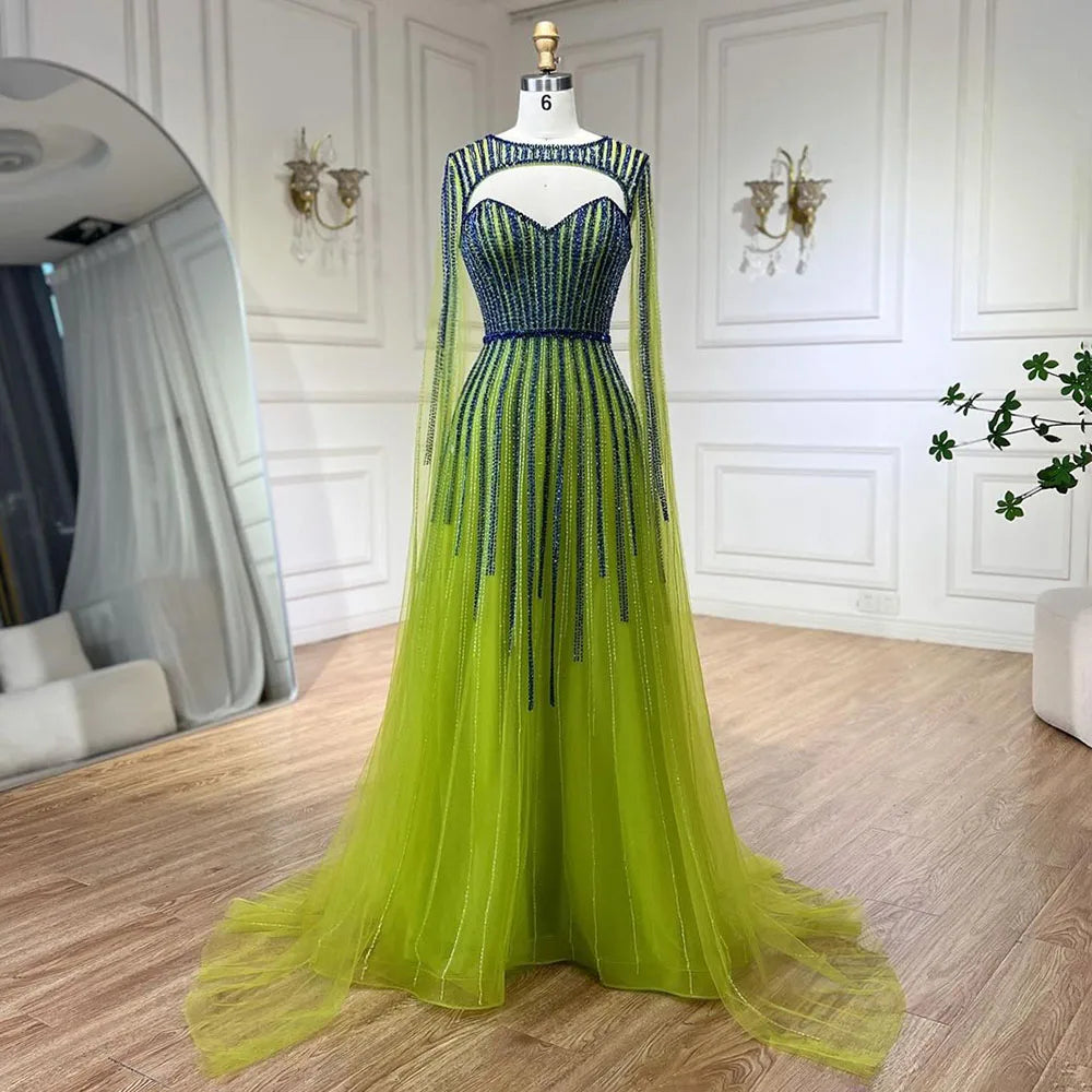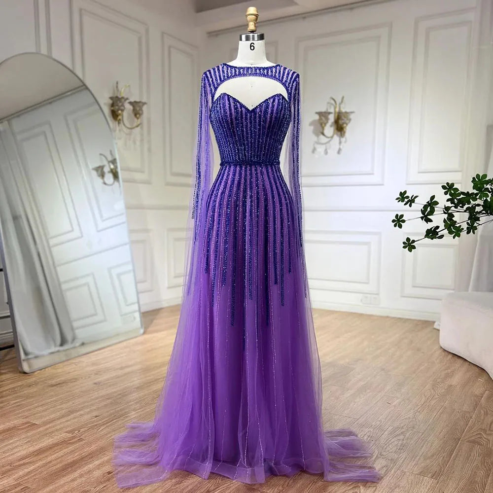 Robe de soirée longue fuchsia style arabe, manches cape, ligne A, perles, pour femme, tenue de soirée, LA72433