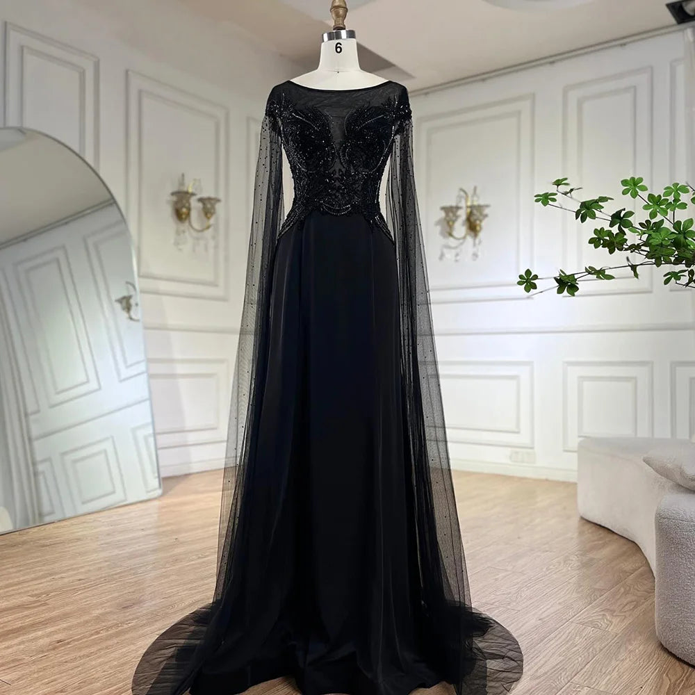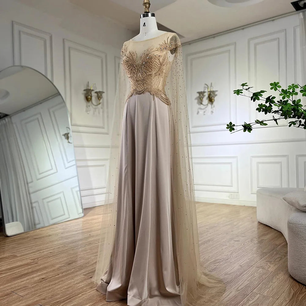 Robe de soirée de luxe en satin, coupe trapèze, manches cape, dentelle et perles, couleur chair, style Dubaï, pour femmes, fête de mariage, LA72702, 2025