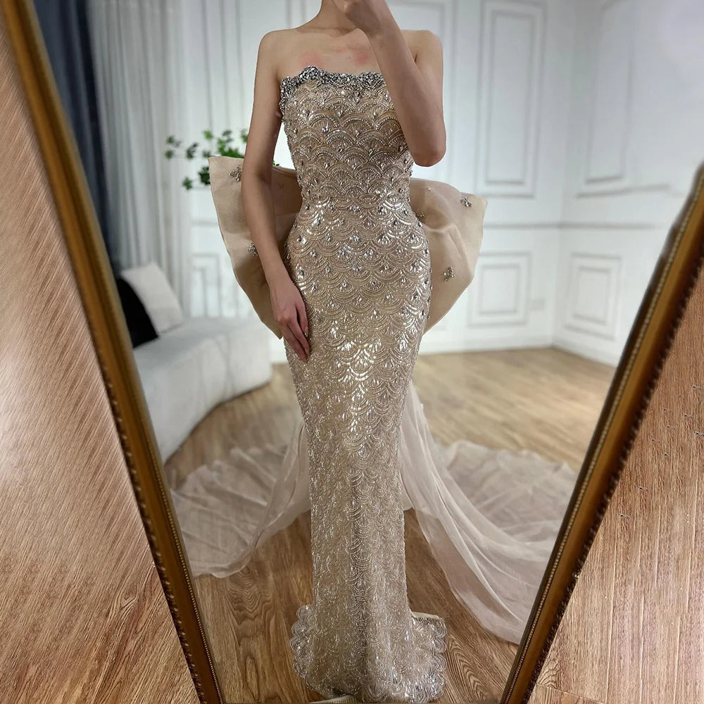 Robe de soirée bustier couleur chair, style arabo-saoudien, avec pompons perlés, pour une occasion spéciale, LA72730, 2025