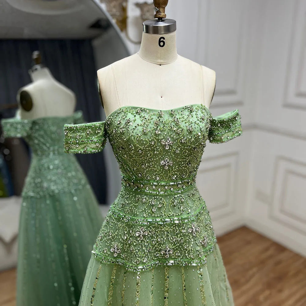 Robe de soirée luxueuse à épaules dénudées et perles couleur caramel, coupe trapèze, pour une occasion formelle, Saudi LA72709, 2025
