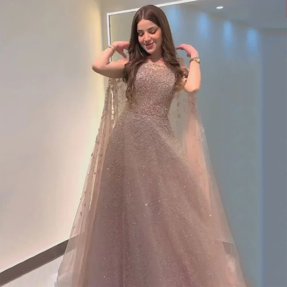 Robe de soirée turquoise saoudienne 2025 avec robe perlée et élégante cape à capuche pour une occasion formelle LA72659A