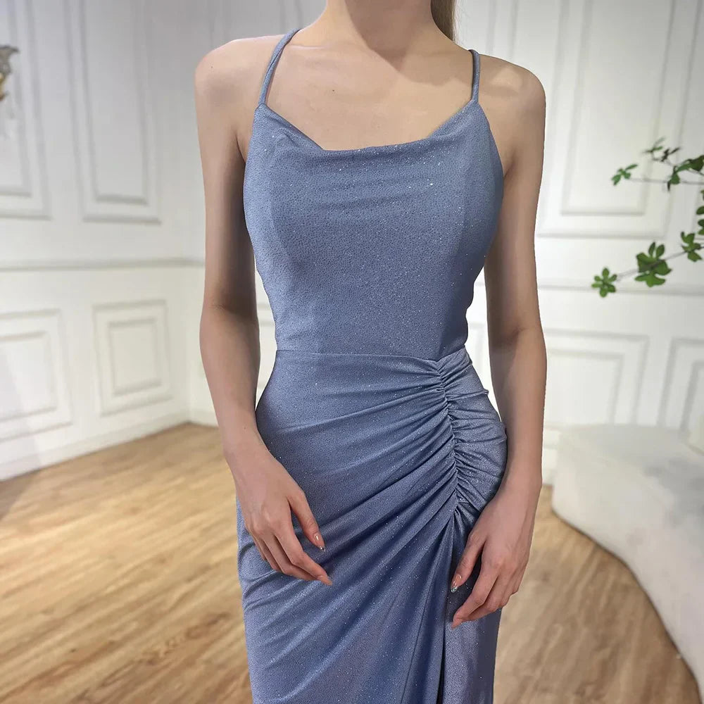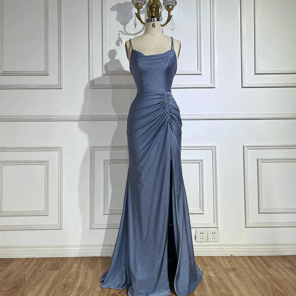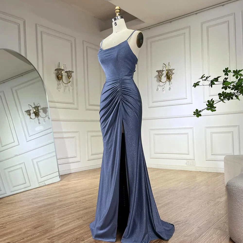 Robe de soirée longue style sirène bleu saoudien, élégante, à bretelles spaghetti, avec fente, pour une occasion formelle, LA72720, 2025