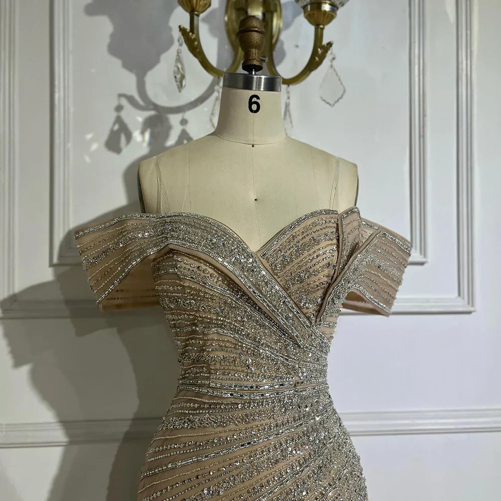 Robe de soirée sirène fendue, couleur argent, couleur chair, style arabe, style sirène, perlée, pour une occasion formelle, Saudi LA72481A, 2025