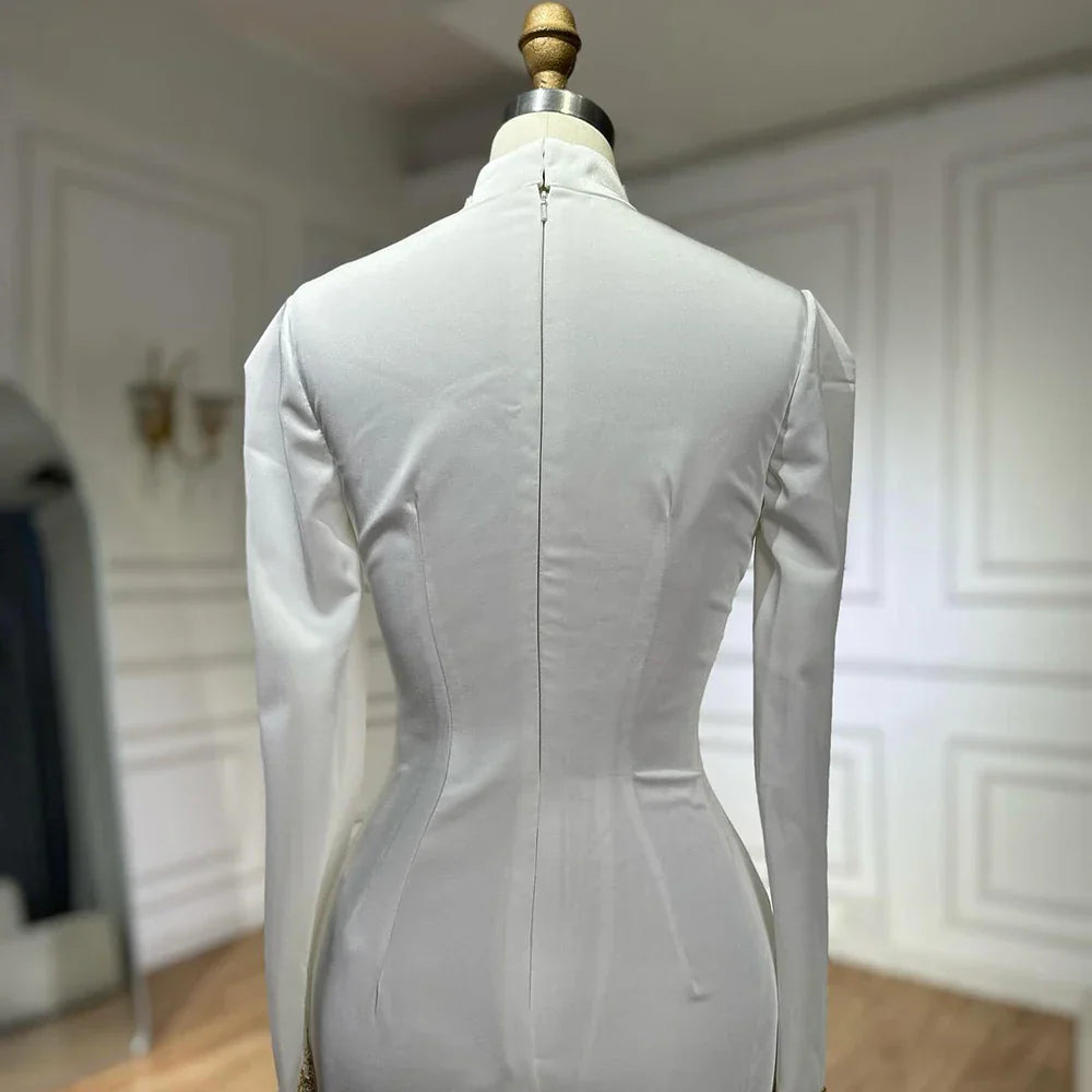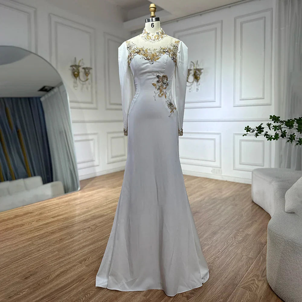 Robe de soirée sirène en satin blanc perlé, style arabe saoudien, pour une occasion spéciale, LA72815