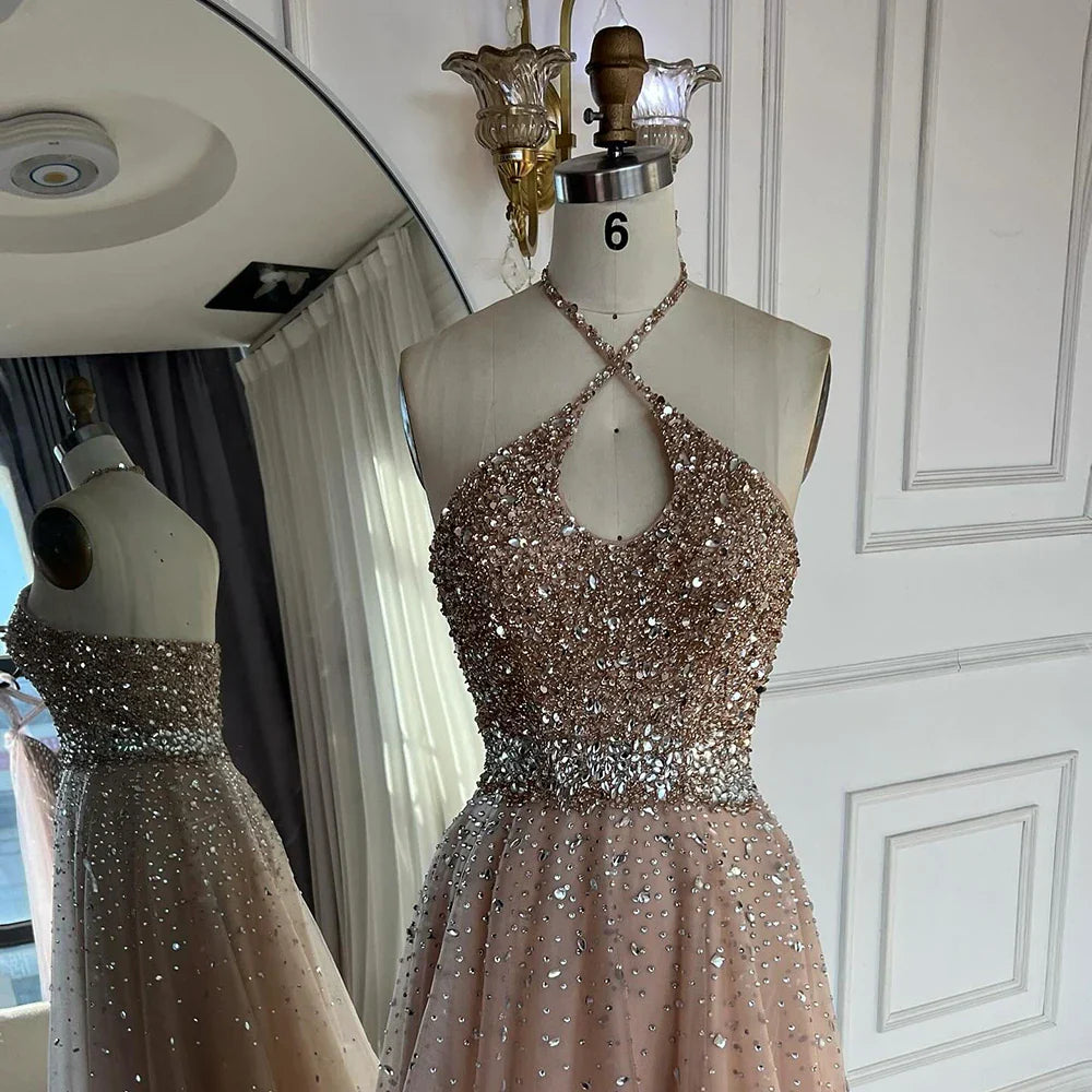 Robe de soirée trapèze en tulle perlé, couleur caramel, style arabie saoudite, modèle 2025, LA72863