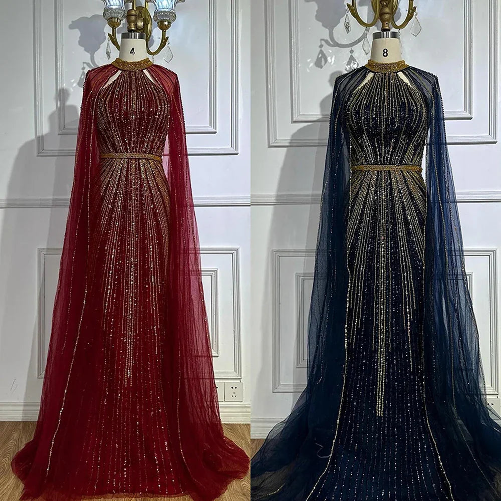 Robe de soirée sirène rouge vin 2025, avec cape et perles, pour une occasion formelle, LA72707A