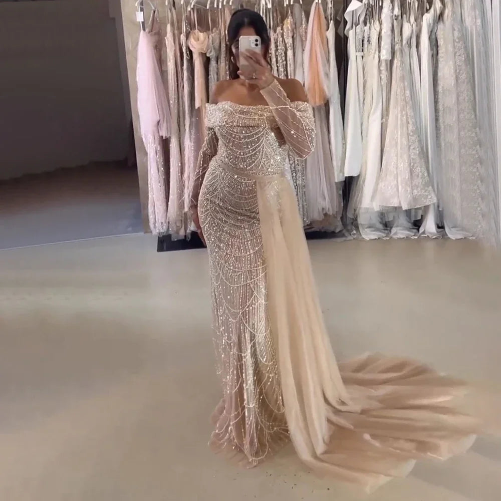 Confectionnée avec expertise pour les soirées les plus luxueuses et élégantes, cette robe sirène à épaules dénudées est dotée d'une surjupe amovible pour plus de polyvalence. Sa superbe teinte bleu clair apporte une touche de sophistication, tandis que sa confection soignée assure une coupe parfaite.