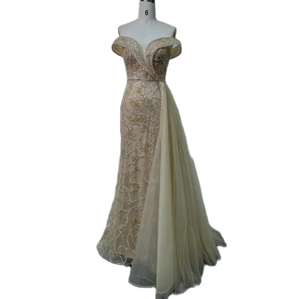 Robe de soirée sirène de luxe, style arabe cyan, avec perles, style Dubaï, sexy, sans bretelles, pour femmes, fête de mariage, LA72207, 2025