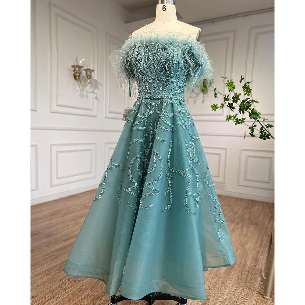 Robe de soirée de luxe style arabe lilas, coupe trapèze, longueur cheville, perles et plumes, pour femme, tenue de mariage, 2025, LA71932