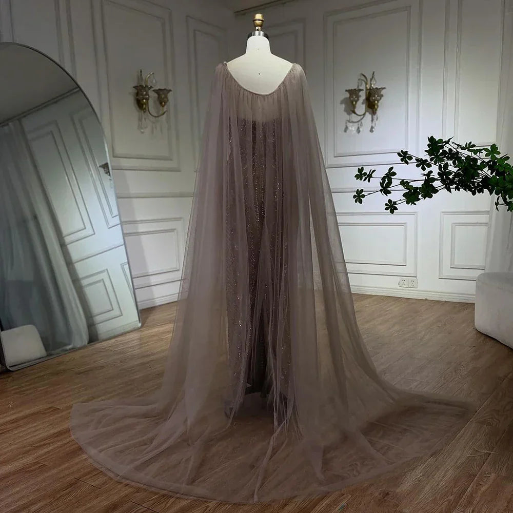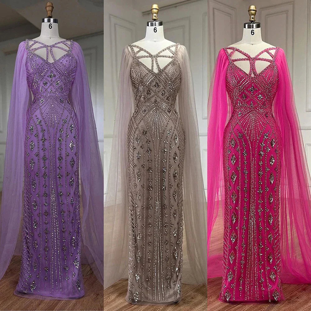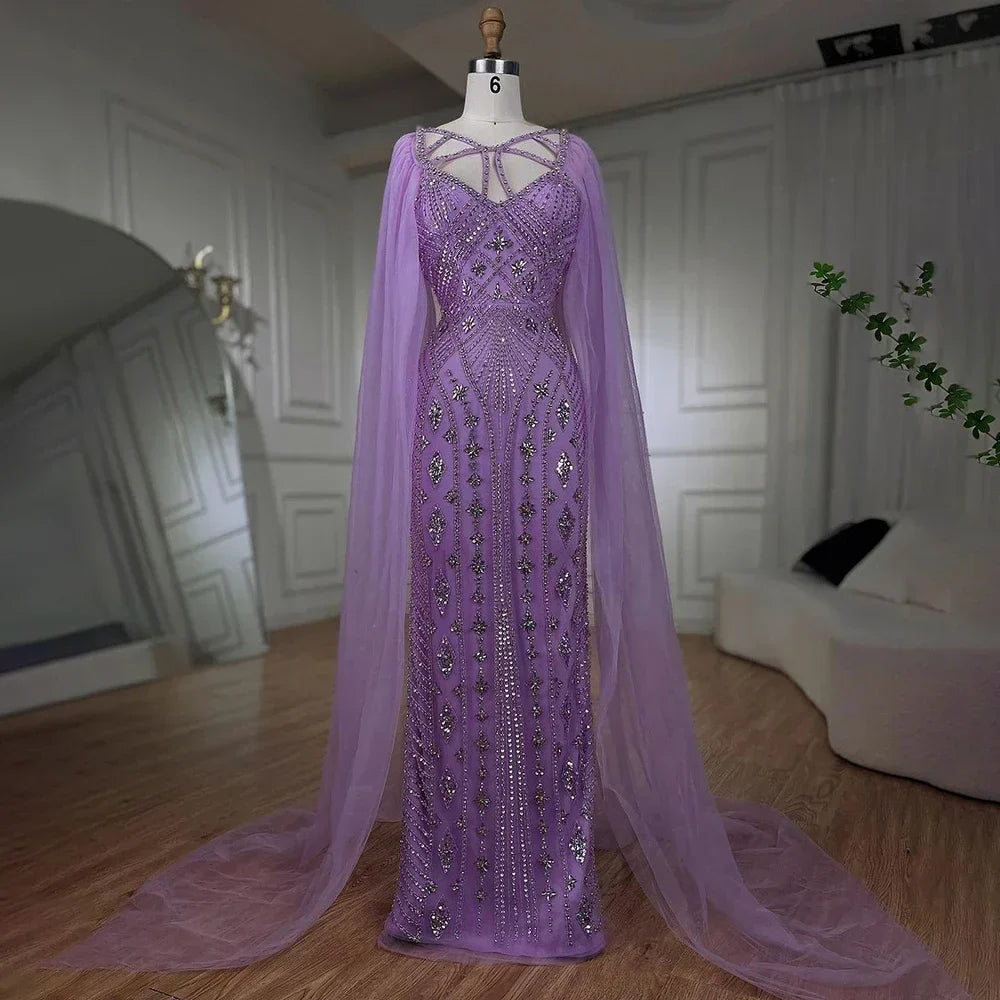 Robe de soirée élégante style sirène, style arabe, luxueuse, lilas, avec châle, perles et perles, pour femme, modèle LA72186, 2025