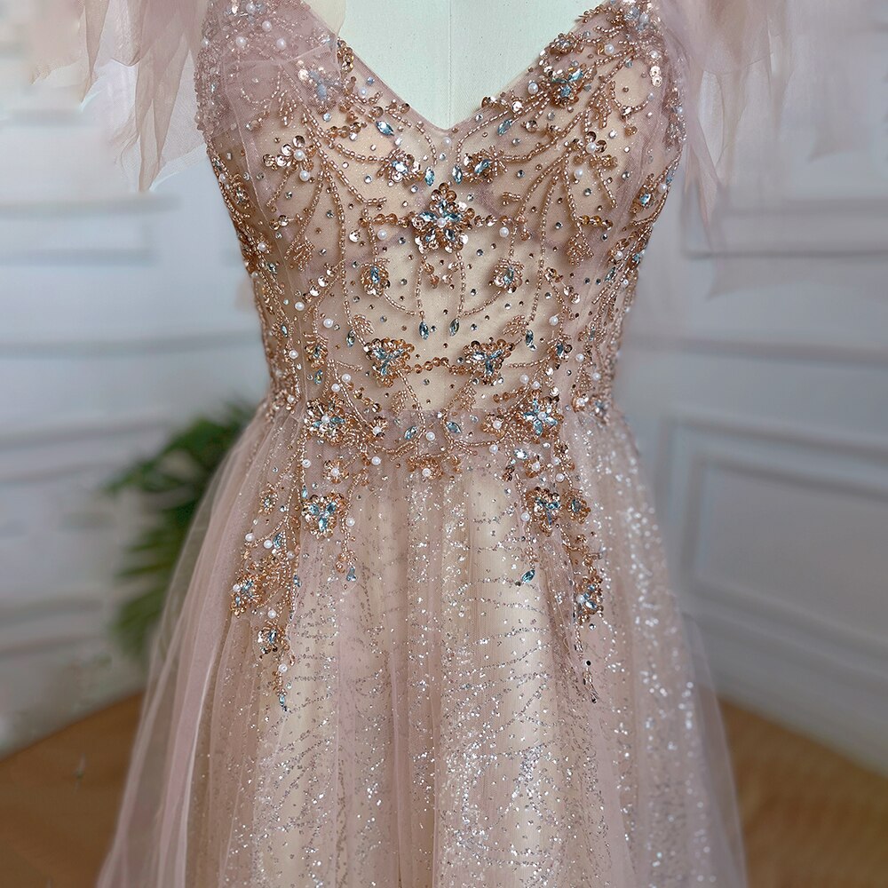 Robe de bal longue rose style arabe, coupe trapèze, sexy, col en V, perles, luxueuse, Dubaï, 2025, pour femmes, LA71904