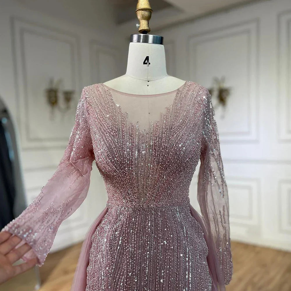 Robe de soirée sirène rose arabe avec jupe, robe de luxe perlée, pour mariage, 2025, LA72584