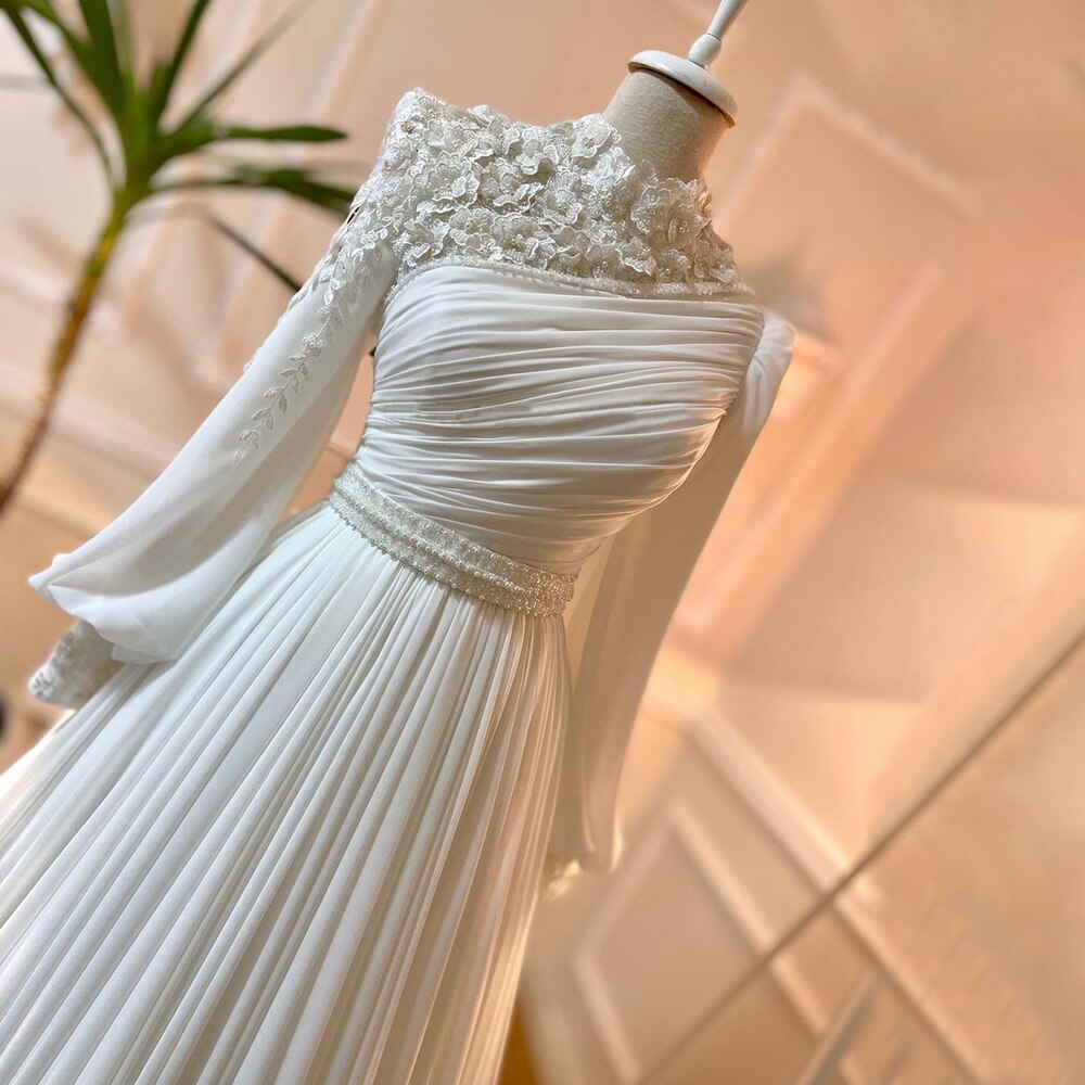 Robe de soirée musulmane blanche à fleurs 3D, style arabe, coupe trapèze, perles, pour femmes, LA71515, 2025