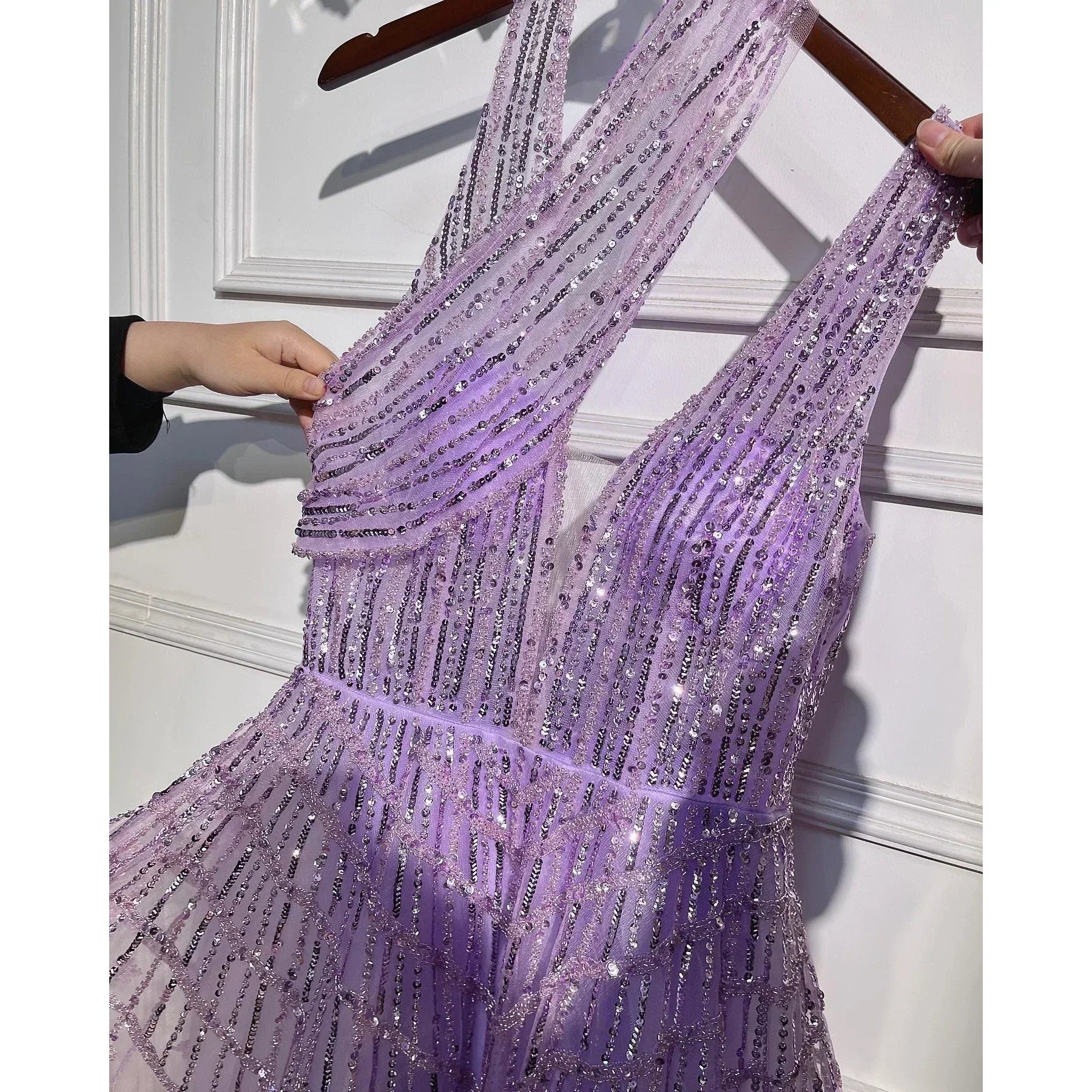 Notre robe lilas de Dubaï, ornée de perles, respire l'élégance et présente une silhouette longue d'inspiration arabe, parfaite pour les mariages, les bals de fin d'année ou les événements spéciaux. Affirmez votre style avec notre superbe robe de soirée.