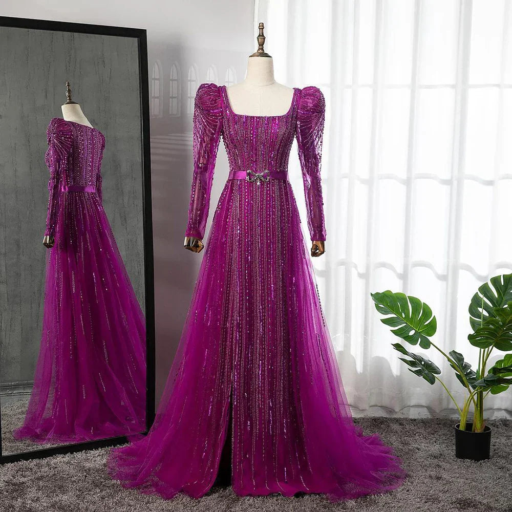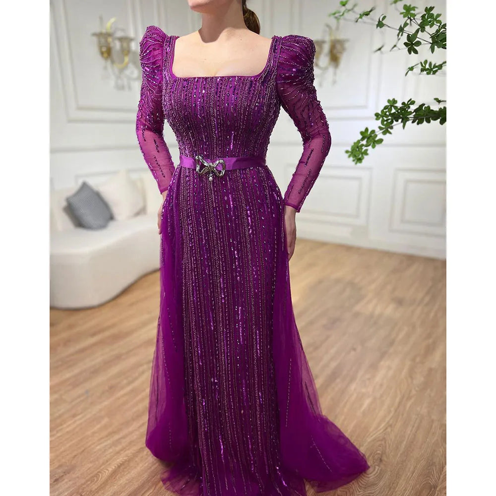 Robe de soirée de luxe fuchsia Dubaï pour femmes, en solde, sans retour ni remboursement, pour mariage, 2025, manches longues, surjupe, soirée formelle arabe, LA71678