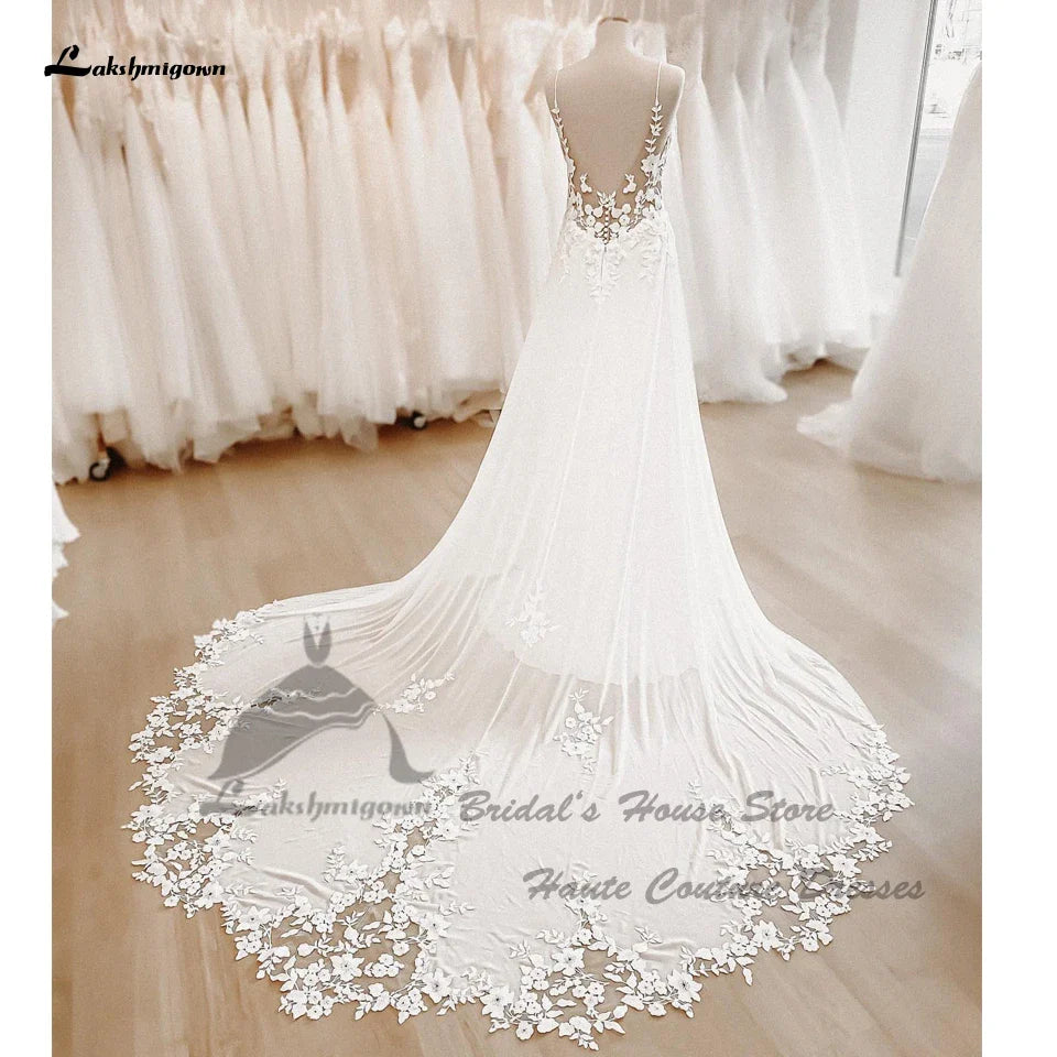 Robe de mariée sexy en mousseline de soie, style bohème, élégante, longue, robe de mariée de plage, avec appliques en dentelle florale et bretelles spaghetti