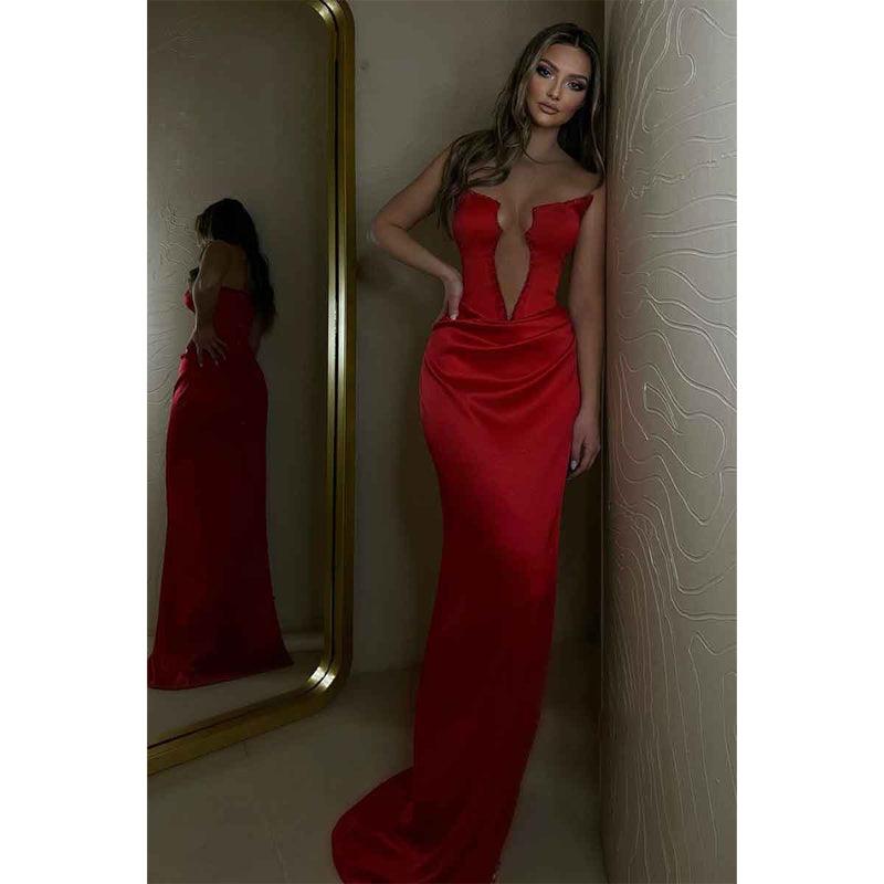 Robe de soirée sirène longue et sexy à col en V profond et perles avec fente