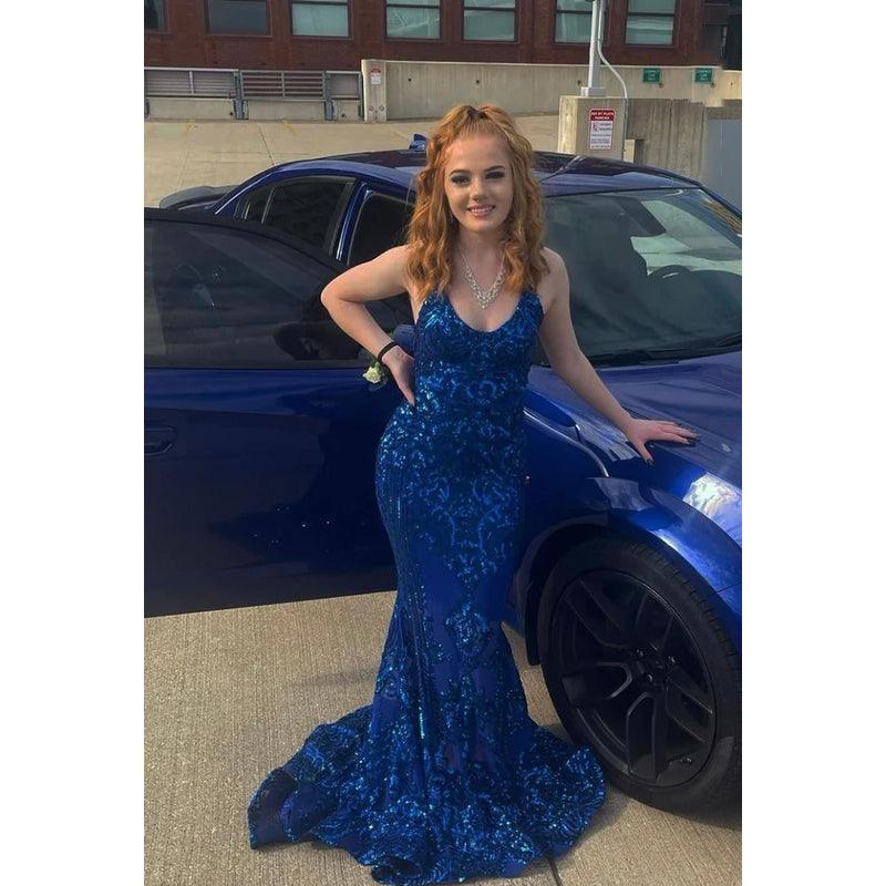 Robe de soirée sirène sexy et sexy, col en V, sans manches, fendue, paillettes