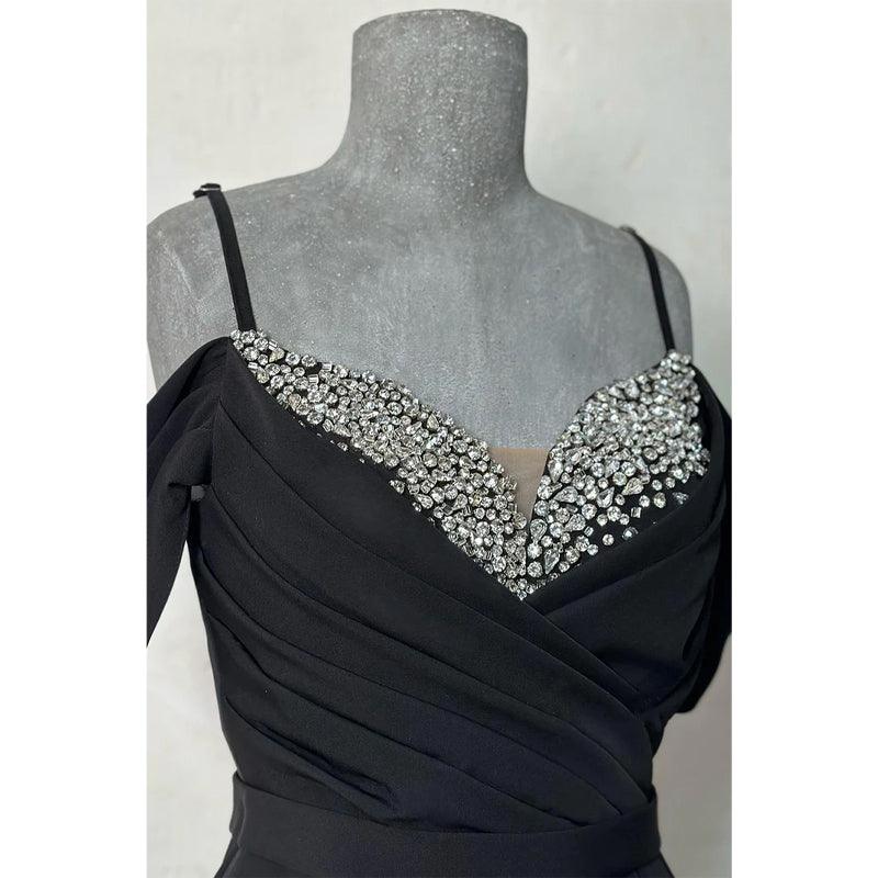 Robe de soirée formelle à plis perlés, à bretelles dénudées et fourreau/colonne