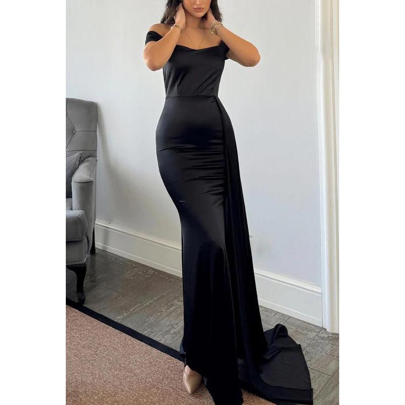 Robe fourreau simple et décontractée à épaules dénudées et sans manches pour les fêtes