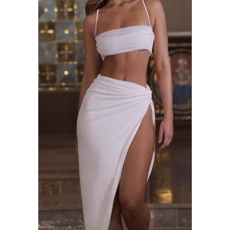 Robe de soirée sexy deux pièces à bretelles spaghetti et plis