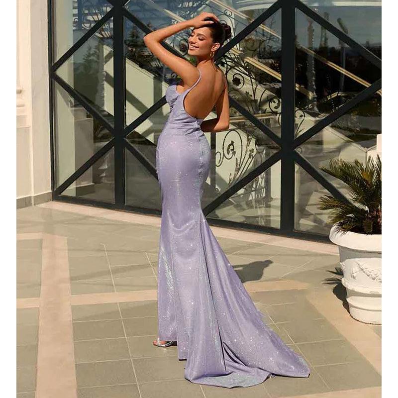 Robe de soirée sirène scintillante à bretelles spaghetti