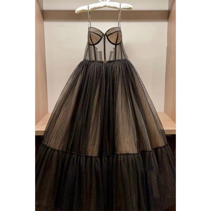 Robe de bal à bretelles spaghetti et décolleté en cœur
