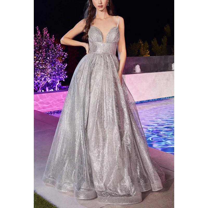 Robe de soirée longue en tulle transparent froncé à décolleté en cœur scintillant
