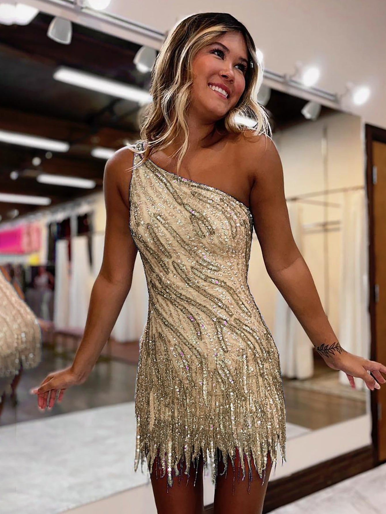 Un choix éblouissant pour votre occasion spéciale. Cette robe fourreau est confectionnée dans un tissu à sequins scintillants. Elle présente une élégante encolure asymétrique et une coupe sans manches. Ornée de sequins chatoyants, d'appliqués délicats et de franges espiègles, elle respire le glamour et la sophistication. Dotée d'une fermeture éclair au dos pour une coupe parfaite, elle est disponible en or et en bleu, vous assurant de briller de mille feux en toute occasion.