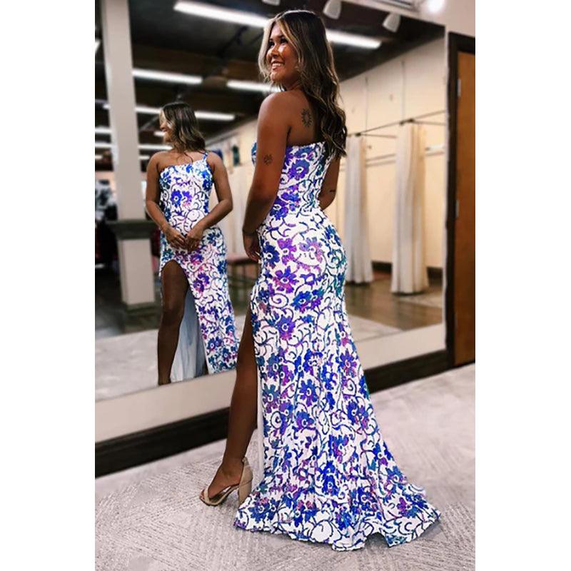 Robe de bal longue sirène scintillante à une épaule et paillettes