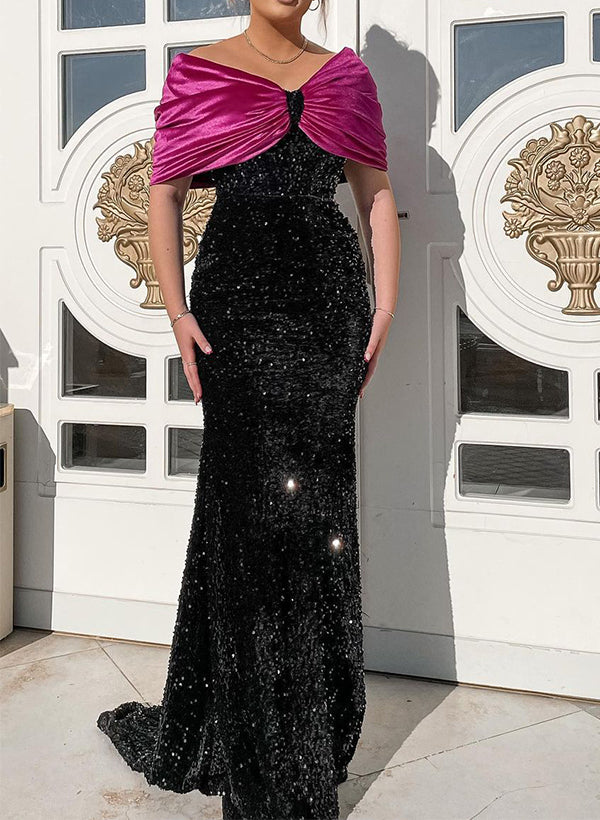 Robes de mère de la mariée scintillantes, coupe trompette/sirène, épaules dénudées et à paillettes