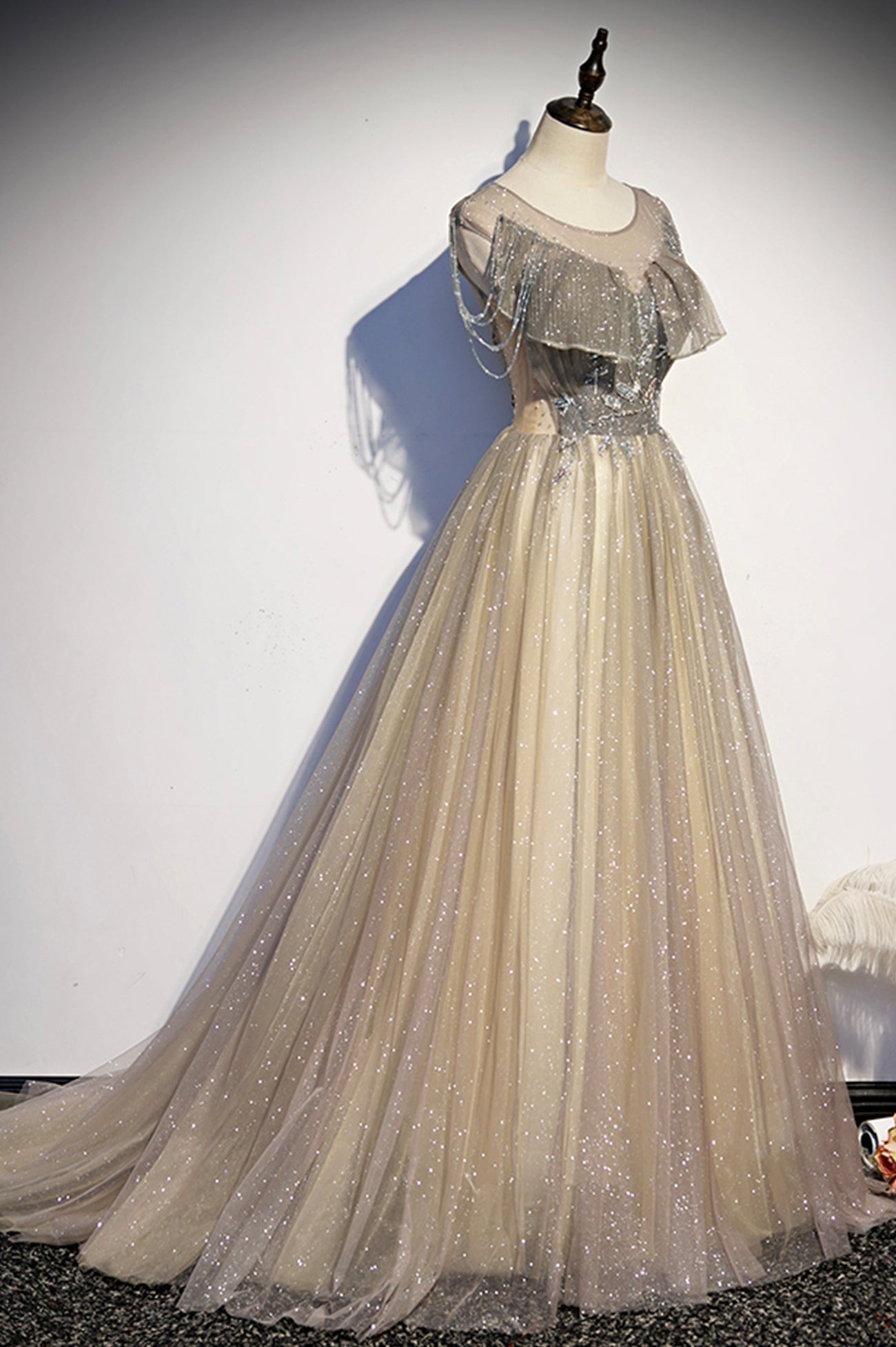 Robe de bal longue en tulle élégante, robe de soirée trapèze s108