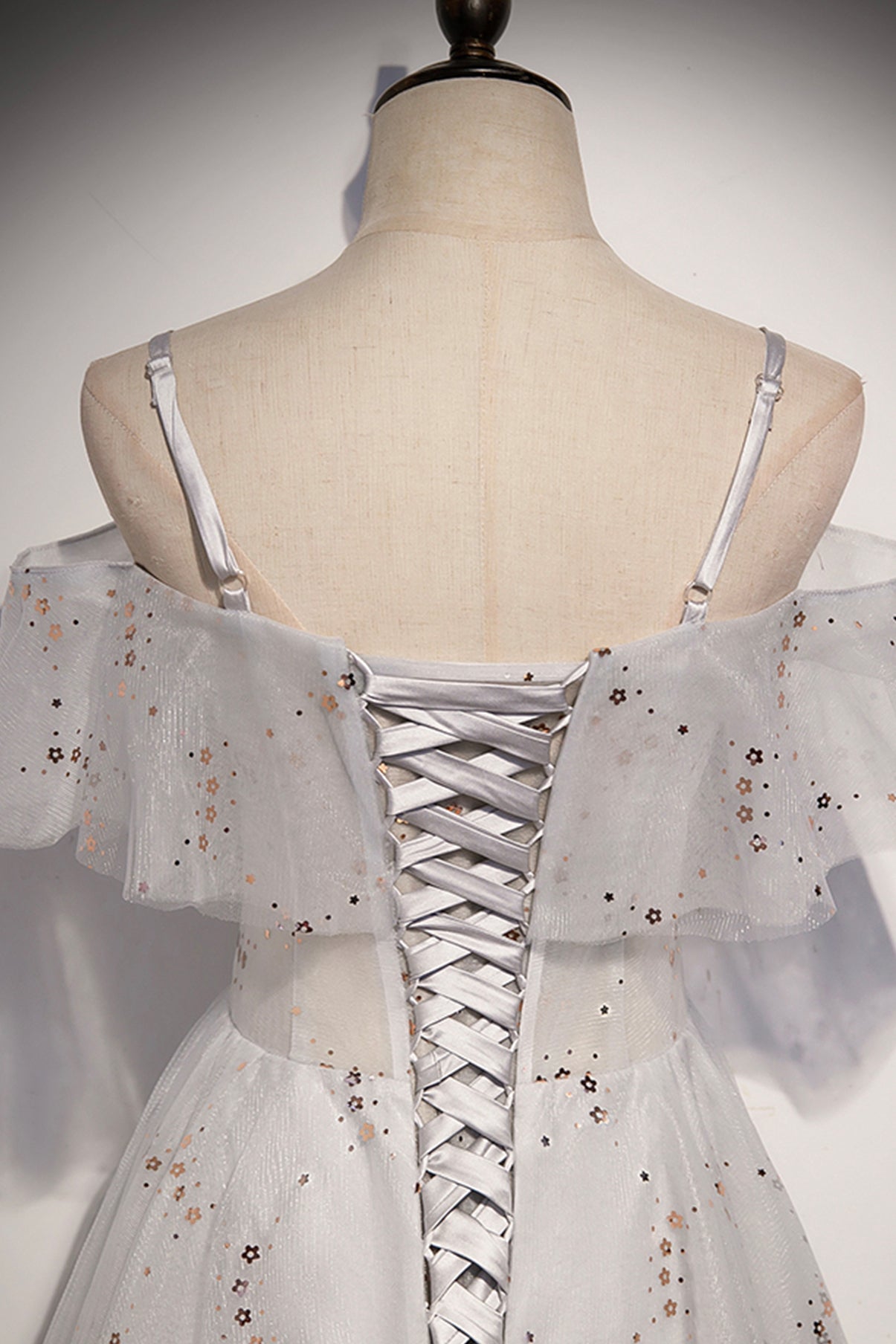 Robe de bal longue en tulle à sequins, coupe trapèze, taille S71