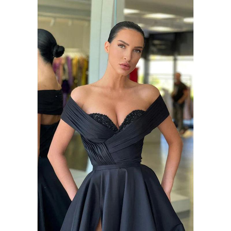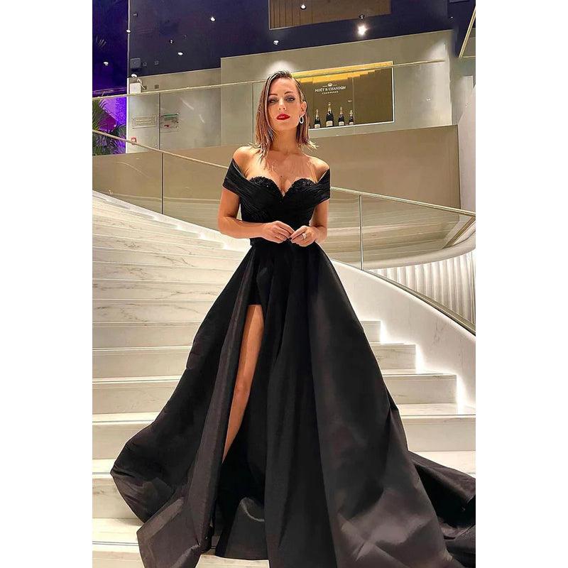 Robe de bal longue trapèze froncée à paillettes et épaules dénudées