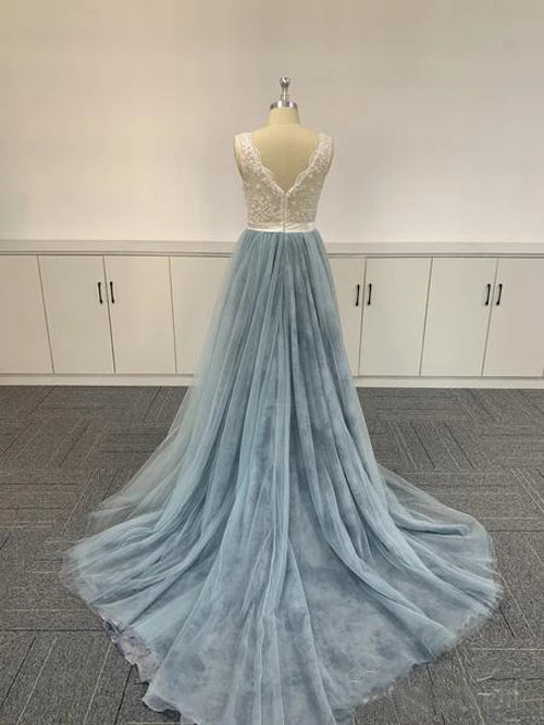 Robes de bal en tulle brodé ombré et dentelle douce à col en V.MP515