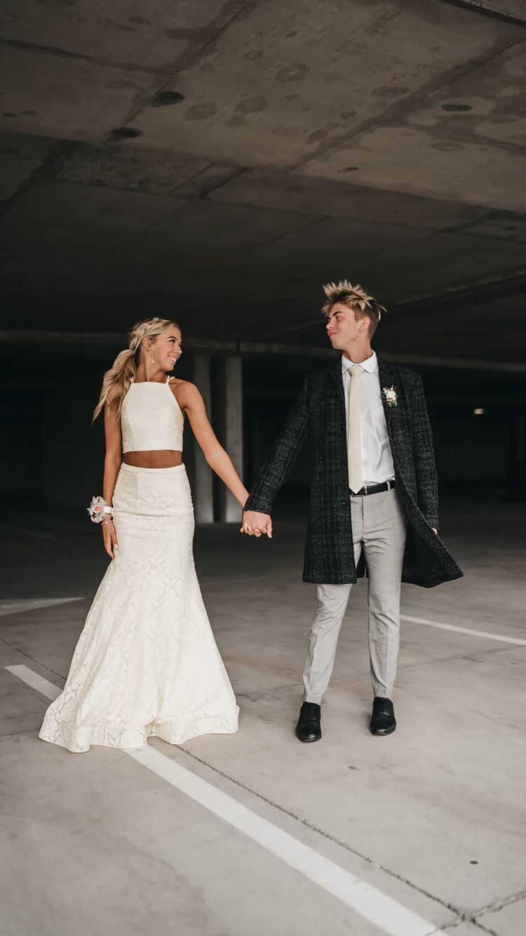 Robe de bal sirène deux pièces en dentelle blanche, robe de soirée élégante Y489