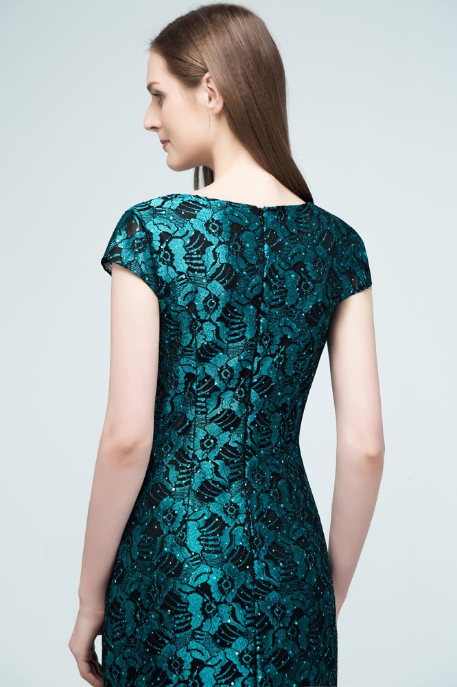 Robe de bal sirène mi-longue à col en V ornée d'appliqués de dentelle