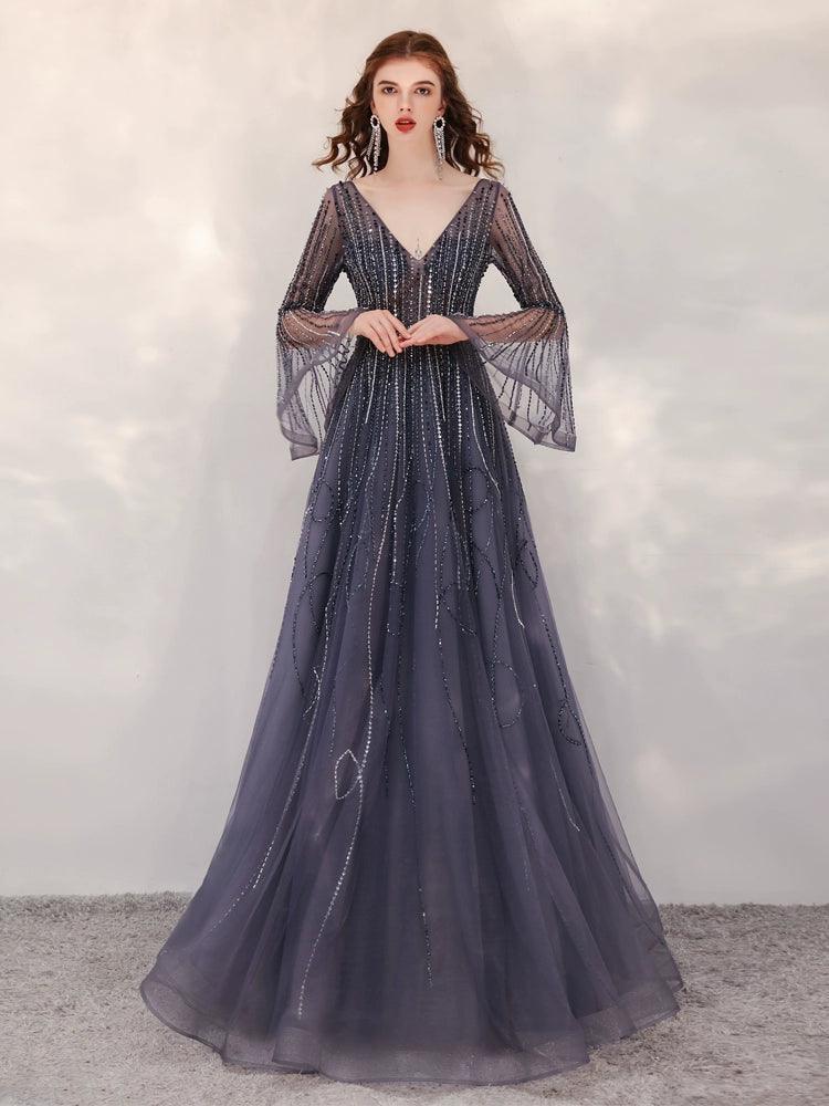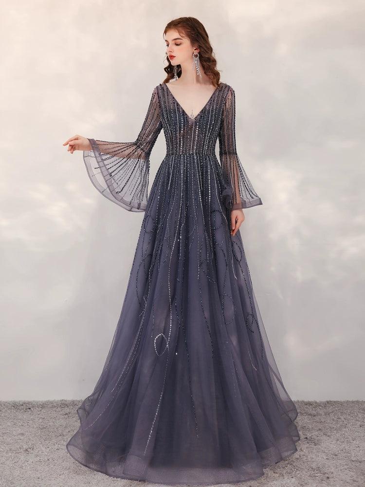 Robe de soirée trapèze sexy pour femme, robe de bal perlée à col en V
